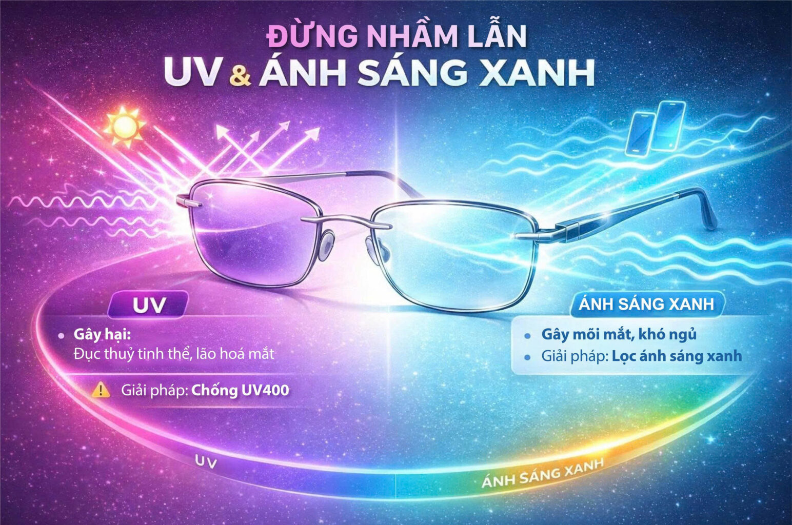 Trong bối cảnh mắt phải tiếp xúc liên tục với cả ánh nắng tự nhiên lẫn thiết bị kỹ thuật số, việc lựa chọn đúng tròng kính trở nên quan trọng hơn bao giờ hết. Tuy nhiên, không phải ai cũng hiểu rõ sự khác biệt giữa tròng kính chống tia UV và ánh sáng xanh. Chemilens sẽ giúp bạn phân tích chi tiết từng công nghệ, để bạn đưa ra lựa chọn chính xác và tối ưu nhất cho nhu cầu thị lực ủa mình.